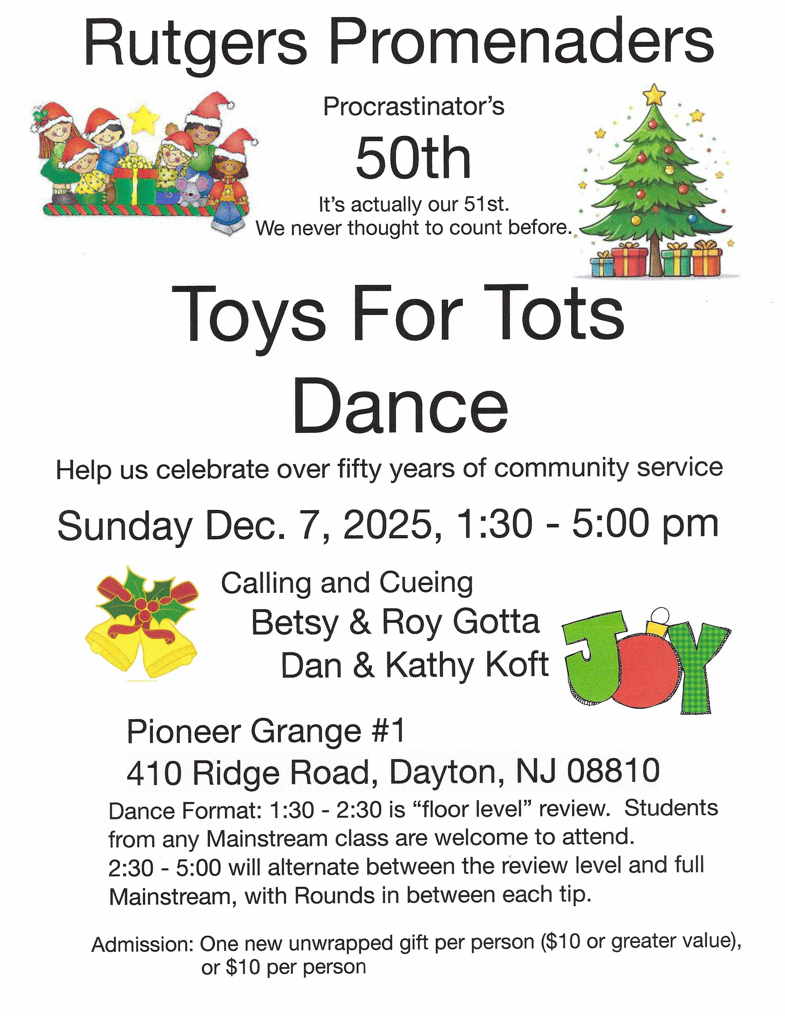 The Rutgers Promenaders Square Dance Club is a family/single friendly club. We dance the Mainstream Program and Rounds.